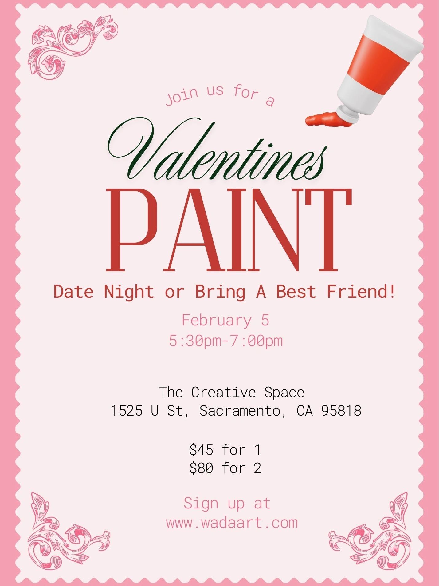 Leading up to Valentine’s Day, join us for a paint date night with your special someone OR a friend ❤️ This will be a memorable evening, full of creativity, love, surrounded by a warm ambience!